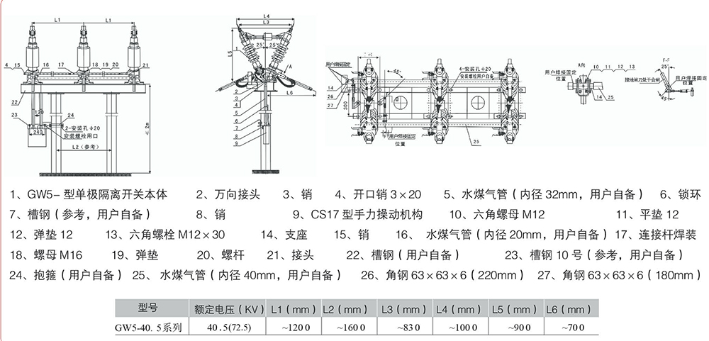 GW5-40.5(72.5)系列户外高压交流隔离开关为交流50Hz的户外高压电器设备,额定电压等级有40、5kV,供高压线路在无负载情况下进行开合,以及对被检修高压母线、断路器等电气设备带电的高压线路进行电气隔离之用,也可用于开、合小的电容或电感电流。