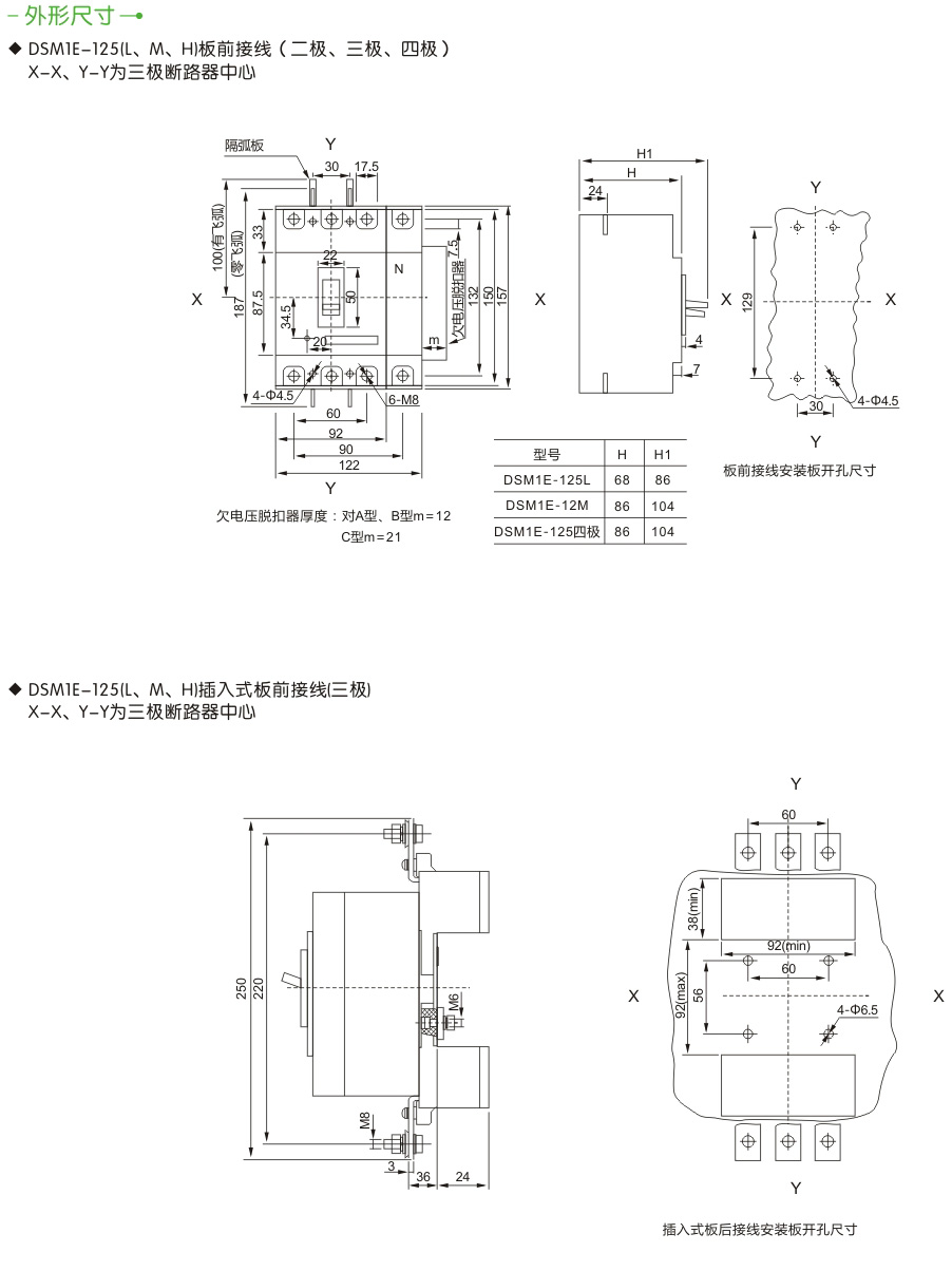 -断路器符合标准·IEC60947-1及GB14048.1《低压开关设备和控制设备总则》。·IEC60947-2及GB14048.2《低压开关设备和控制设备低压断路器》及附录F《带电子过电流保护断路器的附加要求》。◆IEC60947-5.1及GB14048.5《低压开关设备和控制设备控制电路电器和开关元件》。-主要功能及特点一智能控制器是塑壳断路器的核心部件,应用于电动机保护或者配电保护,实现测量、保护、控制和通信功能于一体,使线路和电源设备免受过载、短路、接地等故障危害。·采用MCU微处理器控制,性能稳定可靠:该智能控制器能自供电源,只要一相通电,当电流不低于其额定值的20%时,都能确保保护功能正常工作。·选择性配合具有三段保护:使用类别为B类的断路器与连接在同一电路中的其他短路保护装置在短路条件下具有选择性配合;过载长延时反时限短路延时(反时限、定时限)、短路瞬时等保护功能参数的整定。·具有动作电流、动作时间三段保护参数设置,可进行4-10档调整:用户可根据负载电流要求对控制器进行设置调整,也可根据用户要求选择关断相应功能(定制功能,需用户定货时注明)。大电流瞬时脱扣功能:当在断路器闭合时,或在运行时,如遇到短路大电流(≥20lnml,断路器磁脱扣机构可直接脱扣,双重保护更加可靠安全。·具有脱扣测试(试验)功能:输入直流DC12V电压试验断路器动作特性。故障自诊断功能:对智能控制器自身的工作状态和运行隋况进行保护和检测。·具有预报警指示、过载指示:当负载电流达到或超过设定值时相应导光柱导出光源。◆磁通变换器双气隙技术:工作更可靠稳定,杜绝误动作、脱扣可靠、功率微小。·保护精度高:过载保护、短路短延时保护动作时间精度±10%;短路瞬时保护动作值精度为±15%取决于动作电流。·安装具有互换性:外形尺寸安装尺寸与DSM1系列塑壳式断路器同规格尺寸相同(注:其中DSMIE-630与DSM1-800相同)。