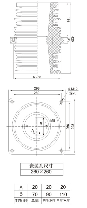 TG3-35Q/260×260  穿墙套管带屏蔽适用于额定电压(10~35)kV, 频率(15~60)Hz的三相交流系统电站和变电所配电装置上 ,供导电部分穿过隔板、墙壁或其它接地物,起绝缘支持和外部导线(母线)间固定连接之用。
