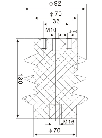 ZJ-10QΦ75×130支柱绝缘子(FN5) 采用环氧树脂浇注成型,耐污秽及潮湿,无需特别维护,只需定期清除表面污物,两端有用于安装的螺纹孔。