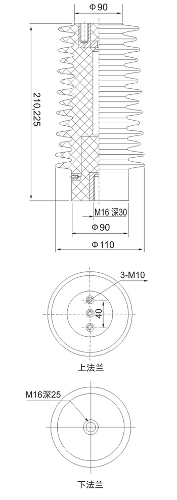 ZJ-24Q/110×190、210、225支柱绝缘子采用环氧树脂浇注成型,耐污秽及潮湿,无需特别维护,只需定期清除表面污物,两端有用于安装的螺纹孔。