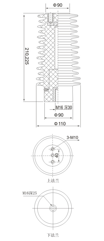 CG5-24Q/110×210、225户内高压带电显示装置传感器通过抽压电容芯棒,从高压带电回路中抽取一定的电压作为显示和闭锁的电源,用于反映装置设置处的带电状态,并能强制闭锁开关网门。电压指示和强制闭锁的工作,均受同一高压信号所控制,但电路系统又是相互独立的.只要高压回路带电,那么即使显示电路和闭锁电路同时出了故障,电磁锁仍处于闭锁状态。因此产品的防误闭锁可靠性大,安全度高。传感器全部按全工况要求设计,爬电距离满足技术要求.显示器外观新颖,电子元件全部进行筛选,组装精致。传感器为环氧树脂浇注支柱绝缘子式产品。可做为隔离开关,接地开关和其它支柱绝缘子使用,具有高强度,耐电弧能力强,局部放电量小等特点。