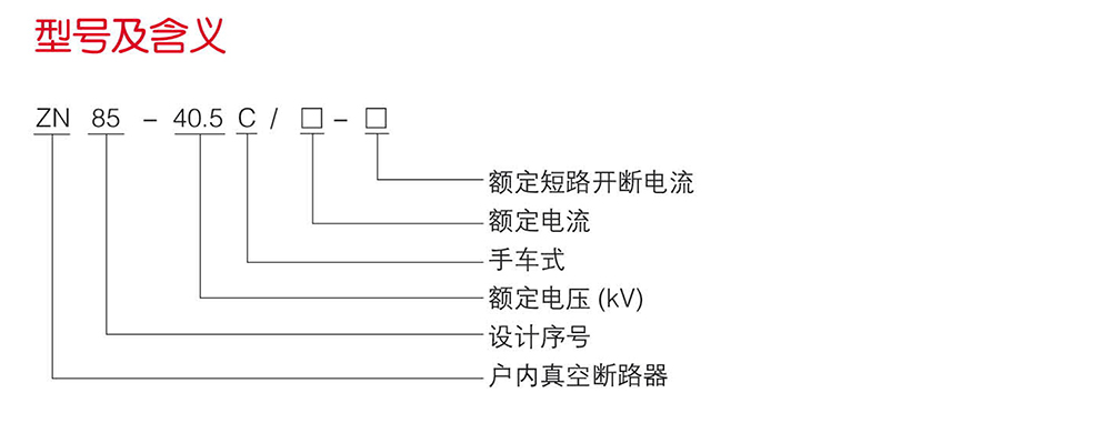 ZN85-40.5系列户内高压真空断路器(以下简称断路器),适用于三相交流50Hz,额定电压40.5kV电力系统中,可供工矿企业、发电厂及变电站作为分合负荷电流、过载电流、故障电流之用。