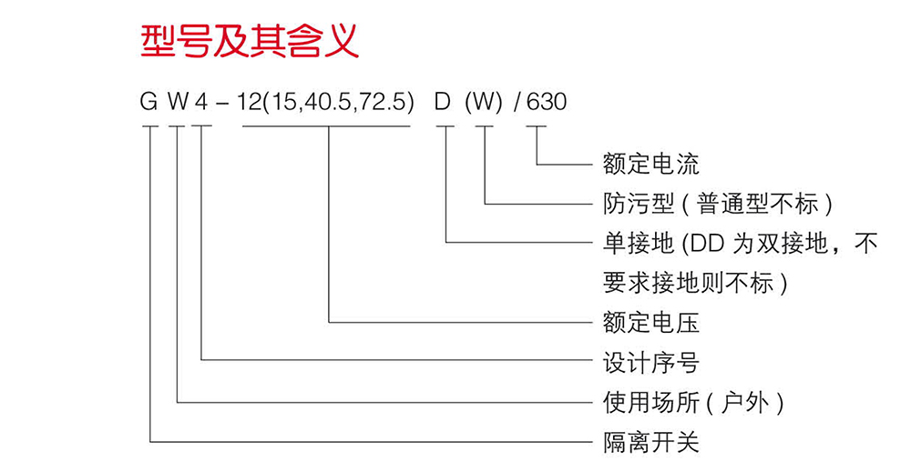 GW4-12(15,40.5,72.5)系列户外高压交流隔离开关适用于装置在户外交流50Hz、额定电压分别为12kV和40.5kV的电力系统中,供线路在有电压、无负载时作为开合电路之用。产品符合GB1985及其他相关标准的要求。
