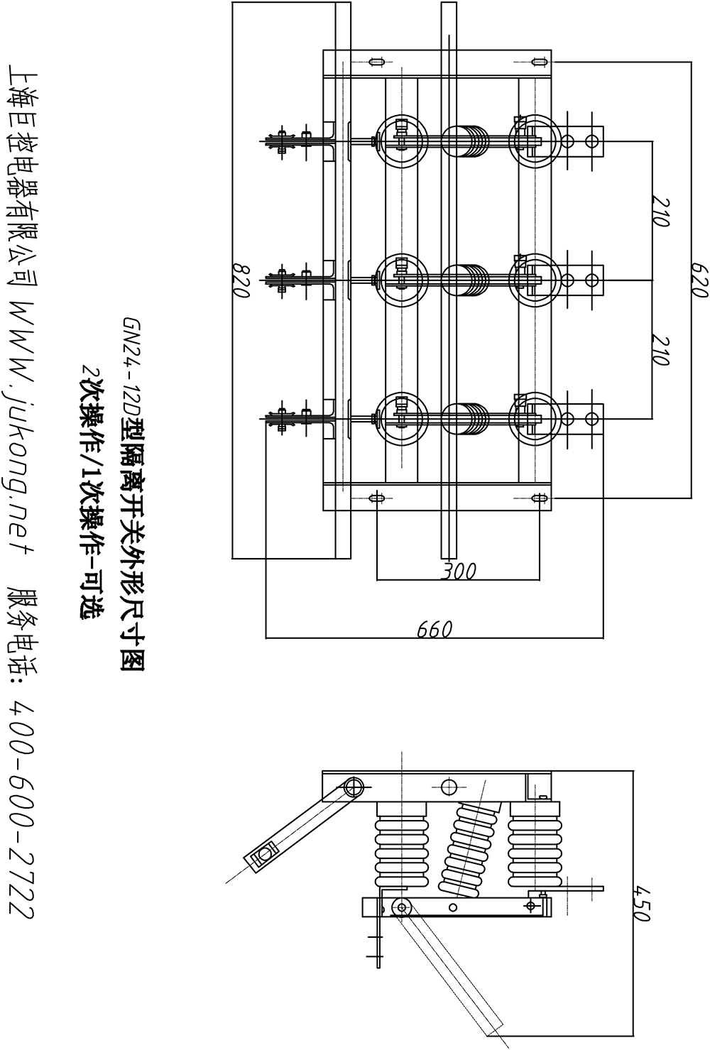 a、GN24-12D(Ⅰ1.2;Ⅱ1.2)O型隔离开关为动(或静)触头侧接地形式;主刀和接地刀组合在一整体框架上;1型为左边操作;2型为右边操作;O型为全工况产品,并可根据用户定货要求附装带电显视装置。
